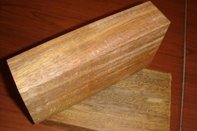 木材材性:光泽强。纹理交错;结构中;甚重硬;强度高;干缩甚大。锯困难,易钝锯;锯屑能刺激鼻喉;砂光、车旋、胶黏性能好。很耐腐,抗白蚁。干燥慢,易翘曲和开裂。